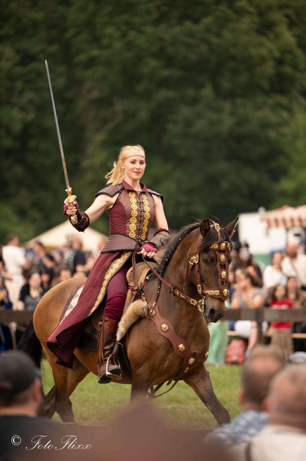 In der Arena steigt die Spannung mit jedem Ritt, während rund um die Burg Gaukler, Musikanten, Händler und Markttreibende das Gelände beleben. Gemeinsam entsteht ein historischer Moment: das finale Ritterturnier auf Schloss Berlepsch – ein Erlebnis, das es so nur noch ein einziges Mal geben wird.